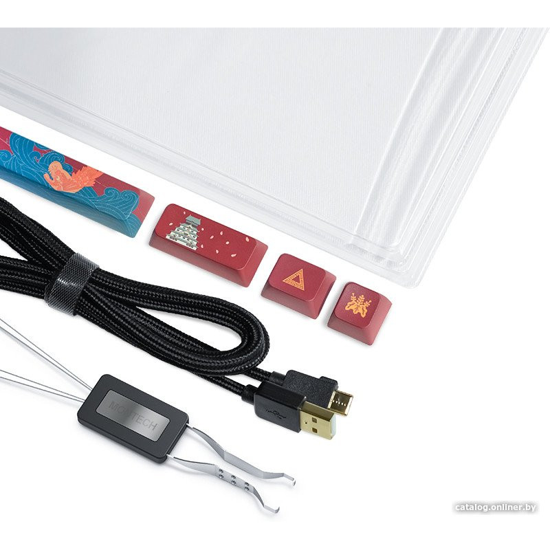 Комплект поставки: - кабель USB Type-C - USB Type-A- два набора кейкапов с тематикой замка Осаки (по 4 штуки в каждом наборе)- пуллер для кейкапов/переключателей- пылезащитный чехол- документация