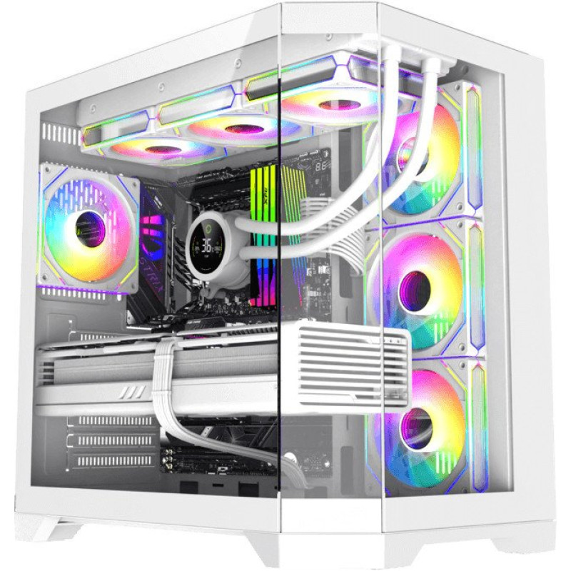 Расположение вентиляторов: сверху: 3 x 120 мм или 2 x 140 ммсправа: 3 x 120 ммснизу: 3 x 120 мм или 2 x 140 ммсзади: 1 x 120 ммпредустановлены:справа: 3 x 120 мм GameMax FN12A-S8I-ARGBсзади: 1 x 120 мм GameMax FN12A-S8I-ARGB